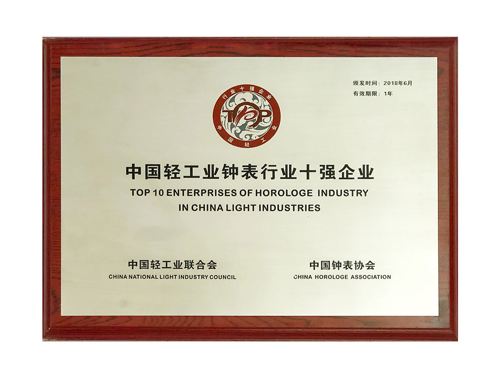 雷諾表榮獲“中國輕工業(yè)鐘表行業(yè)十強企業(yè)