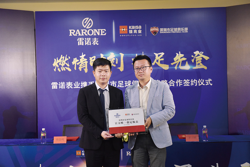 盛夏狂歡,剛剛落幕的俄羅斯世界杯燃情未熄,7月18日,就在深圳市足球俱樂部麗湖足球基地,一股新的足球熱浪襲來。雷諾表與深圳市足球俱樂部舉辦戰(zhàn)略簽約儀式,發(fā)布合作款產(chǎn)品。雷諾表副總經(jīng)理詹溫鳴先生與深圳市足球俱樂部常務(wù)副總經(jīng)理李小剛出席了本次簽約儀式,共同見證雷諾表與深圳市足球俱樂部攜手!本次合作是中國首例足球俱樂部與腕表品牌攜手,具有非同凡響的合作意義。