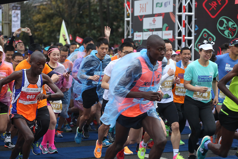 本屆賽事起點(diǎn)位于鳳凰體育場,途經(jīng)宣化門、熊貓谷和都江堰市人民政府傾力打造的天府綠道、環(huán)山旅游線(熊貓綠道),馬拉松終點(diǎn)為“世界文化遺產(chǎn)”青城山。來自29個國家和地區(qū)的3萬名跑者踏上最美賽道,起跑前他們高聲齊唱《歌唱祖國》和《我和我的祖國》,現(xiàn)場氣氛十分燃!天下著小雨,跑馬人熱情不減。今年是成都雙遺馬拉松連續(xù)開跑第五年,五年奔跑歷程,今年的成都雙遺馬拉松更別具意義。