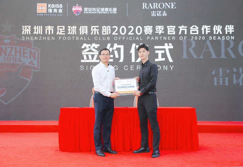 2020年,深圳市足球俱樂部與RARONE雷諾表達成2020賽季合作協(xié)議,雙方繼續(xù)攜手為深圳足球加油,打造足球跨界合作典范。