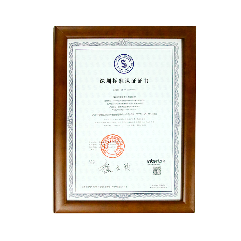 本次會議為紀(jì)念2017年世界標(biāo)準(zhǔn)日及為第二批深圳標(biāo)準(zhǔn)認證企業(yè)、深圳標(biāo)準(zhǔn)專家?guī)斓谝慌鷮<掖砗虸EC青年專家“優(yōu)秀選手”頒發(fā)證書。雷諾表業(yè)不僅參與了深圳標(biāo)準(zhǔn)中有關(guān)鐘表標(biāo)準(zhǔn)的起草、修訂工作。而且是標(biāo)準(zhǔn)實施以來通過《深圳標(biāo)準(zhǔn)認證》僅有的兩家國產(chǎn)手表企業(yè)之一。