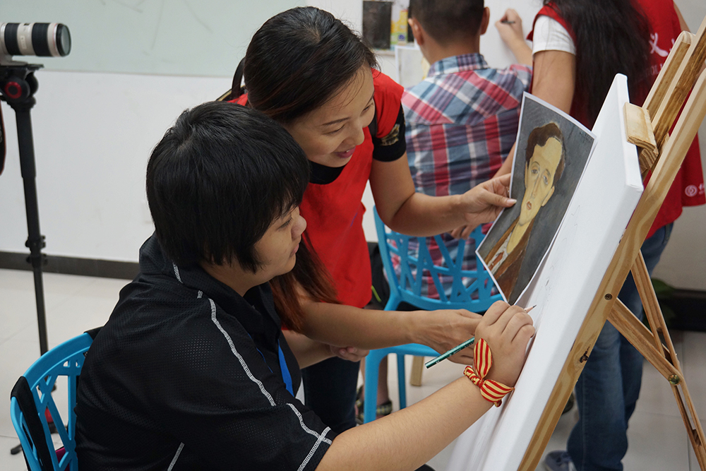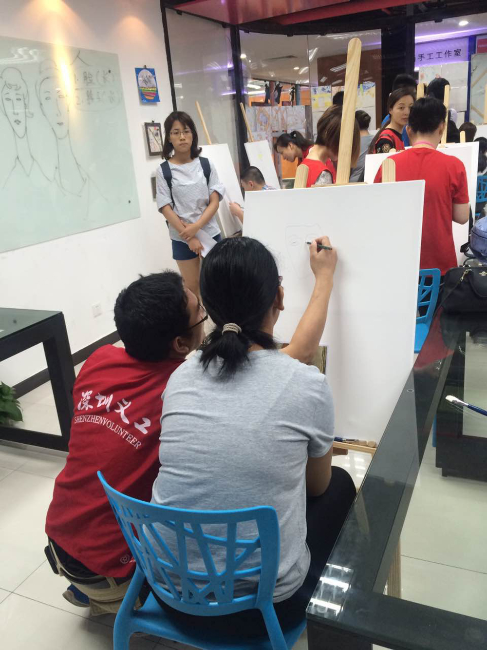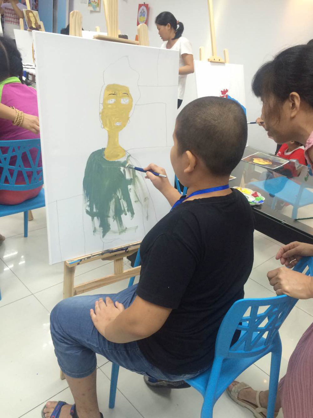 開(kāi)課當(dāng)天,自閉癥兒童在義工的陪伴下,跟著繪畫老師學(xué)會(huì)畫筆,到慢慢完成繪畫課,他們的注意力很專注,對(duì)色彩有特別的偏愛(ài),整個(gè)繪畫課程簡(jiǎn)單有趣,加上義工的耐心陪伴,讓畫室洋溢著一種溫馨有愛(ài)的氣息。